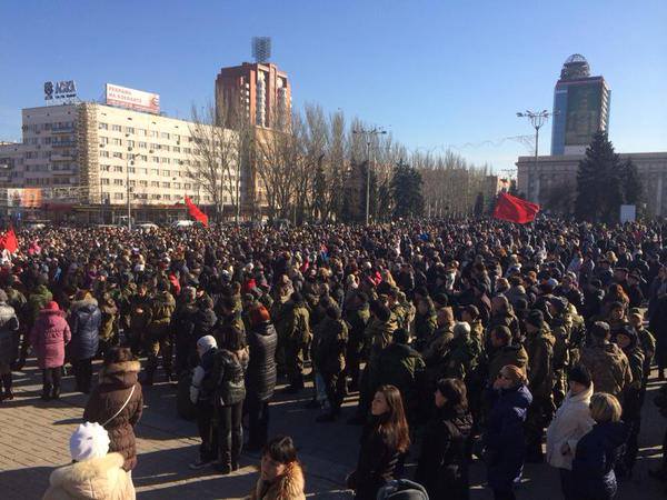 Между тем общественная организация "Союз левых сил Донбасса" сегодня провела митинг в центре Донецка в честь годовщины протестов против Революции достоинства и праздника Дня защитника Отечества. К памятнику Ленина пришли более 600 человек, сообщает ДАН.